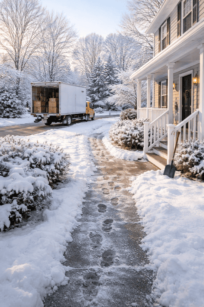 This isn’t just about protecting your belongings. It’s about safety. Slips and falls are the number one injury risk during winter moves, and a cleared path protects both you and your moving crew.